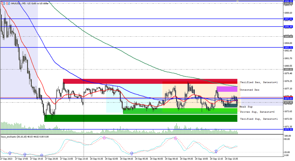 23/9/28 XAUUSDトレード戦略と考察 XAUUSD本日のトレード戦略と考察 Twitter Facebook はてブ Pocket LINE コピー 2023.09.292023.09.28 目次 トレード戦略経済指標週足日足4時間足1時間足30分足15分足5分足 トレード戦略 1時間レベルのサポート1870~1876を背にしたロング狙い。目標値は1883~1886。 経済指標 21:30に実質GDPと新規失業保険申請件数、23:00に中古住宅販売成約指数です。 週足 短期下、長期上。 日足 短期下、長期下。 4時間足 短期下、長期下。 1時間足 短期上、長期下。 30分足 短期上、長期下。 15分足 短期上、長期下。 5分足 短期上、長期下。